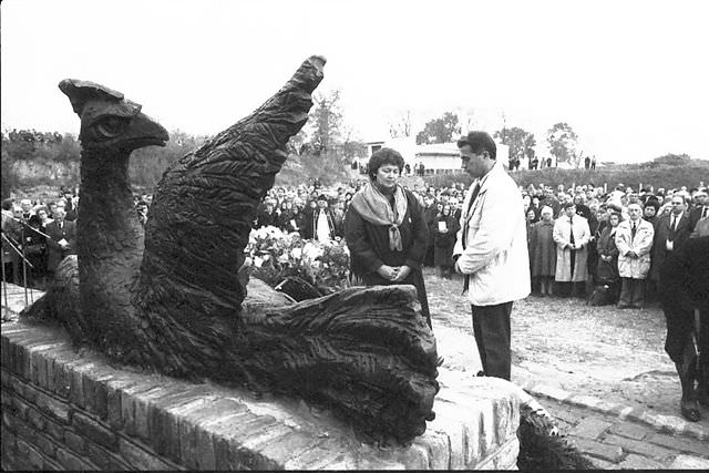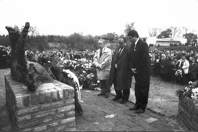 - voltak azért köztük horvátok, bunyevácok és németek is- akiket rosszakaró bejelentések alapján, találomra, vagy csupán a nemzeti hovatartozásuk miatt pincékben, laktanyákban összegyűjtöttek, majd minden bírósági, vagy bármilyen eljárás nélkül, napokon át a fagyos őszben, alsóneműre vetkőztetve, összedrótozott kézzel, éjféltájban lehajtottak ide az akkori téglagödörbe.Ott balra fenn voltak a gépfegyverfészkek, ahonnan belelőtték az áldozataikat az előre kiásott árkokba. Másnap reggel, lapáttal a vállukon, énekelve jöttek a partizánlányok, akik betemették az árkokat. Éjfélkor az egész újra kezdődött.
