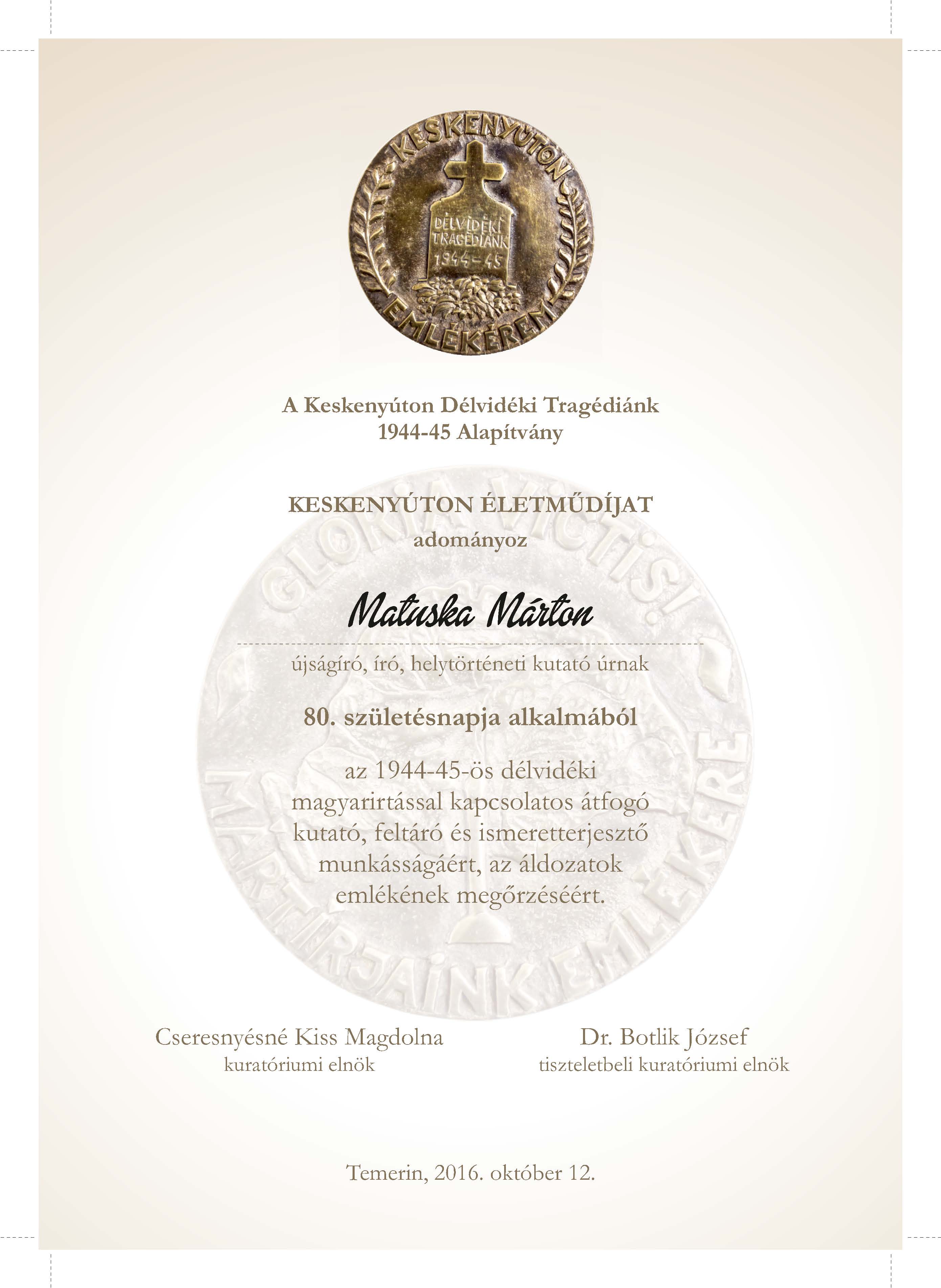In memoriam Matuska Márton